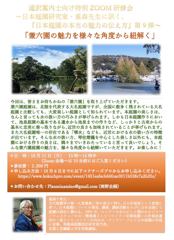 今回は、重森先生第9弾、お待ちかねの『兼六園』研修のお知らせです!